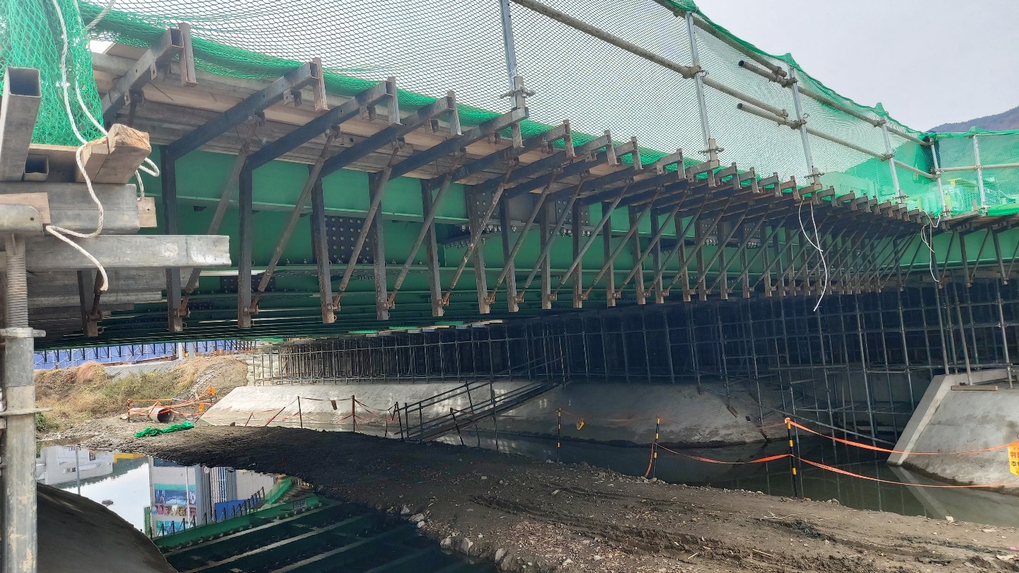 주식회사 아심은 교량 상부 구조 시공 과정에서 발생하는 현장 문제를 정밀하게 해석하고, 이를 실제 시공 장비와 구조 시스템으로 구현해 온 교량 엔지니어링 전문 회사입니다. 교량은 양 교대 위에 거더를 거치한 후, 상부 슬래브 철근 배근과 콘크리트 타설을 통해 완성됩니다. 이 과정에서 거푸집을 어떻게 안정적으로 지지하고, 작업성이 좋은 구조로 시공할 것인지는 공정의 효율과 안전성을 좌우하는 핵심 과제입니다.